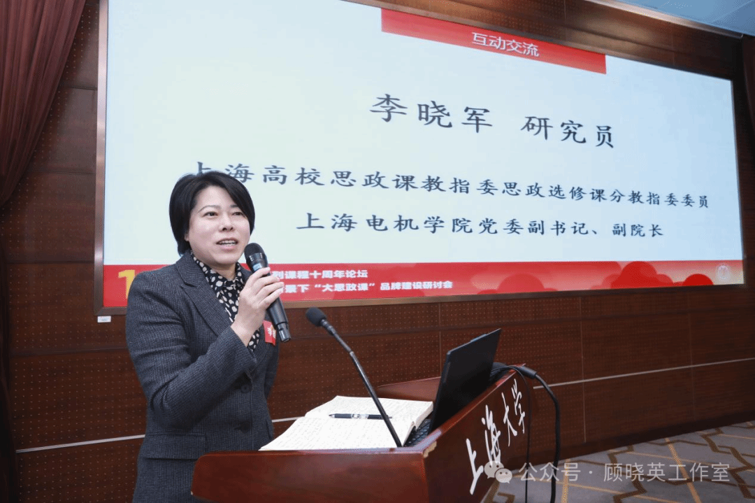 教育部课程思政教学研究示范中心(上海大学)负责人、上海高校思政课名师工作室——顾晓英工作室主持人顾晓英主持了“课程策划话系列”“教师代表述心得”“学生代表话感悟”“媒体记者忆同行”“新书发布”“出版人话教材”等板块内容。