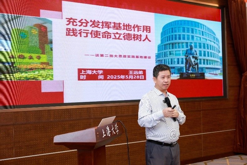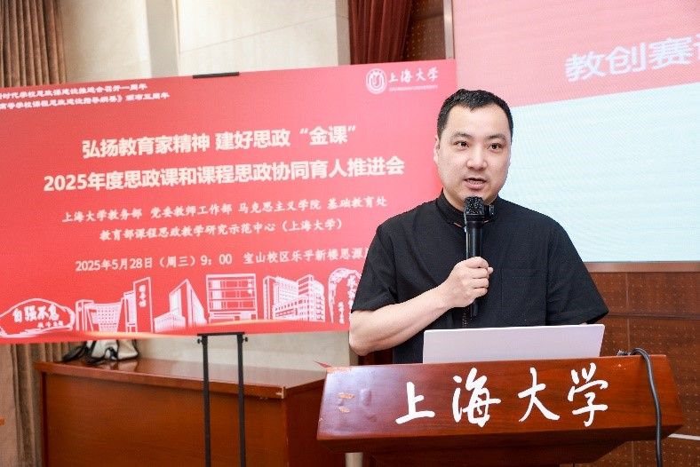 为深入学习贯彻党的二十大和党的二十届二中、三中全会精神,全面落实全国教育大会精神和《教育强国建设规划纲要(2024-2035年)》,贯彻落实上海市教育大会精神,加快推进新时代立德树人工程,弘扬教育家精神,建好思政“金课”,深化大中小学思政教育一体化建设,总结和展示我校思政课和课程思政协同育人成果,2025年5月28日上午,2025年度上海大学思政课和课程思政协同育人推进会在上海大学宝山校区召开。会议由上海大学教务部、党委教师工作部、马克思主义学院、基础教育处、教育部课程思政教学研究示范中心(上海大学)联合主办。来自上海大学课程思政实践基地——宝山区消防救援支队官兵代表,南京工业大学、同济大学、华东师范大学、上海大学附属嘉定留云中学等十余所学校的骨干教师参会。部分学院党委书记、教学院长、学院课程思政分中心负责人、课程思政联络员、课程思政教学名师、名师工作室主持人、近年来立项建设的课程思政项目负责人及团队、师生代表等80余人参会。校党委常委、统战部部长、教师工作部部长曹为民与会。教务部副部长、课程思政教学研究中心负责人顾晓英主持会议。