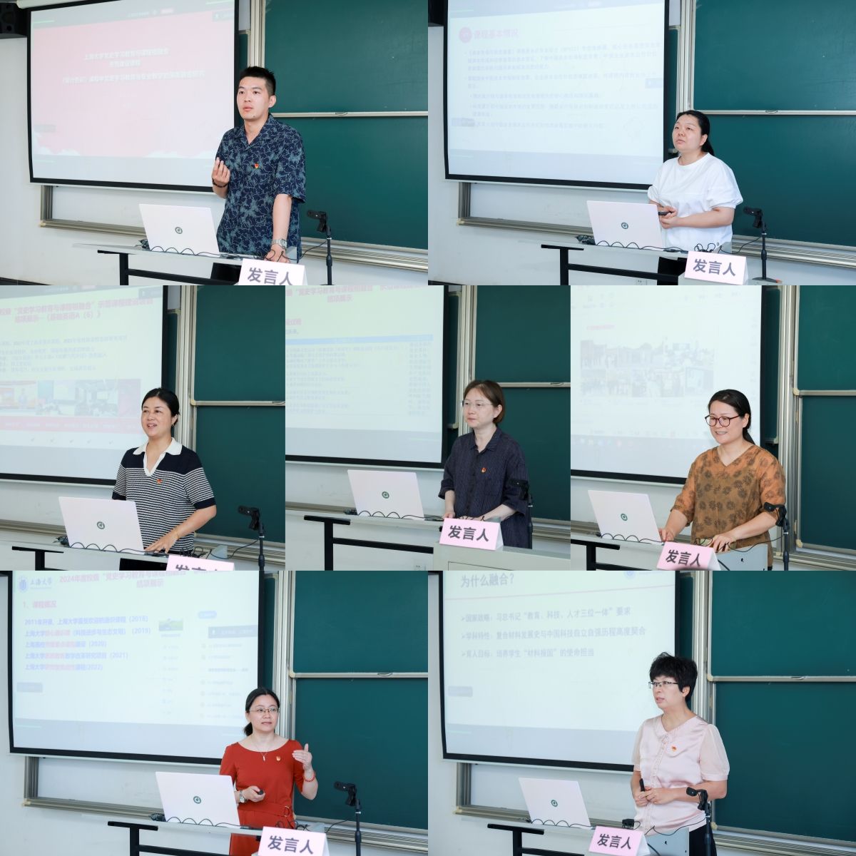 上海大学校级课程思政名师工作室马亮、杨小明老师结合自己的课程教学交流了自身感悟,阐述了未来课程建设的优化方向与实施构想。教育部课程思政教学研究示范中心(上海大学)副主管曹园园、上海大学教务评估党支部郭风英老师分别分享了办会和观摩心得。