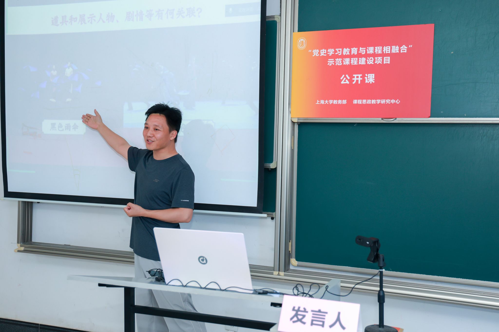 上海大学音乐学院还国志老师以“信仰永存、红色舞蹈文化的解码与创新表达”为主题,结合舞剧《永不消逝的电波》开展党史融入课程的公开课说课教学。他引导学生从肢体语言、服饰、道具、舞美、音乐等多维度分析,强调《永不消逝的电波》舞剧承载着精神传递与历史印记,引导学生深刻领悟传承红色基因,感悟中国共产党人践行的初心使命。