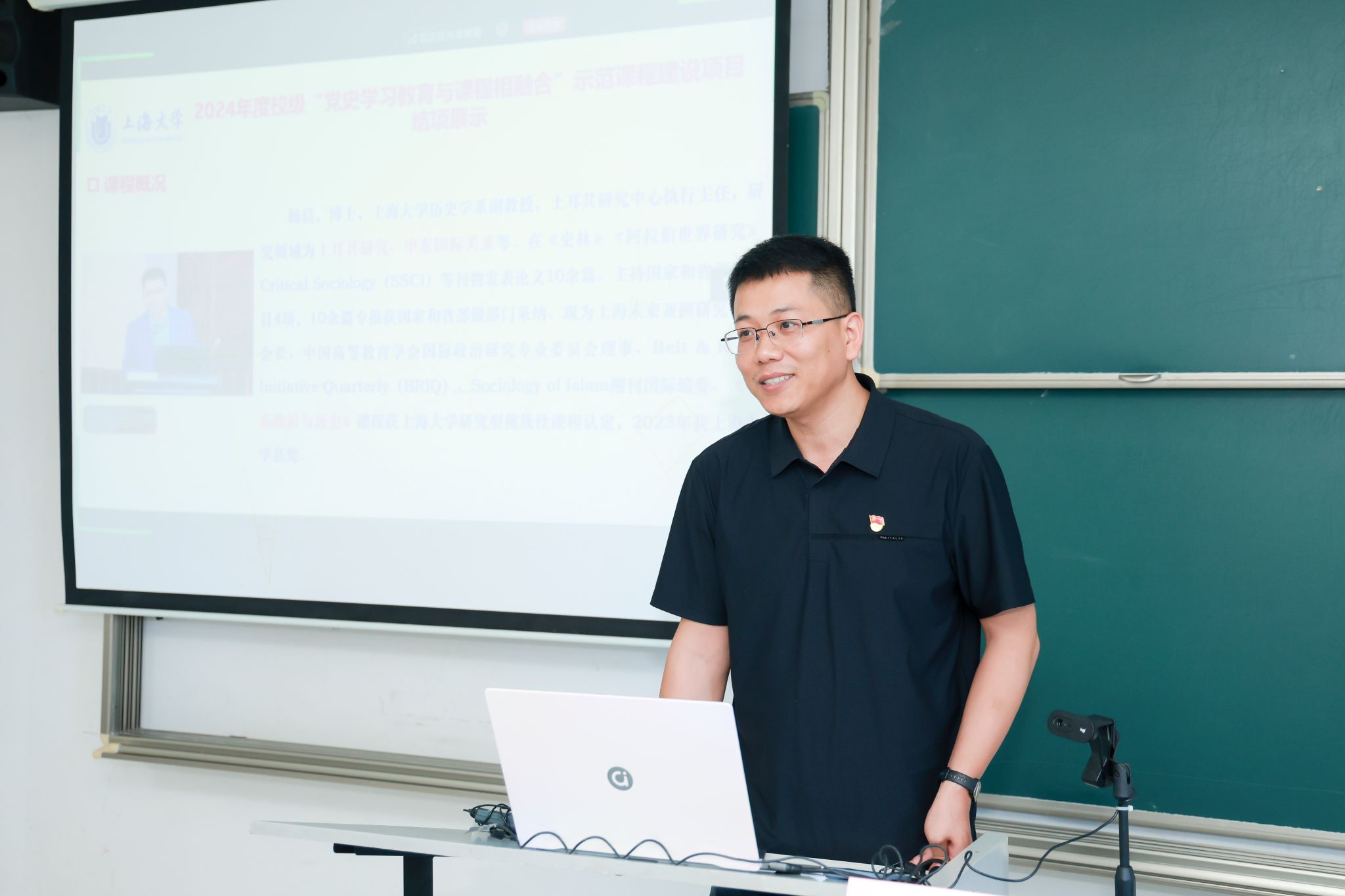 2025年7月1日上午,上海大学2024年度“党史学习教育与课程相融合”示范课程建设项目结项展示会暨第20期全国高校党史类课程联盟共享课于宝山校区A419教室举行。在中国共产党成立104周年之际,本次会议同步作为上海大学教务评估党支部主题党日活动。结项展示会由上海大学教务部、教育部课程思政教学研究示范中心(上海大学)主办,采取线上线下相结合的方式召开,项目负责人、教务评估支部党员代表、课程思政名师工作主持人代表等30余人线下参会,来自井冈山大学、延安大学、安徽师范大学、淮南师范学院、南昌师范学院等党史类课程联盟校的教师代表线上参会。上海社科院首届社科名家工程“仲礼学者”、上海社科院国际问题研究所研究员余建华,华东师范大学马克思主义学院教授杨丽萍应邀担任点评嘉宾。教育部课程思政教学研究示范中心(上海大学)负责人、上海高校思政课名师工作室主持人、上海大学教务部副部长顾晓英担任主持。