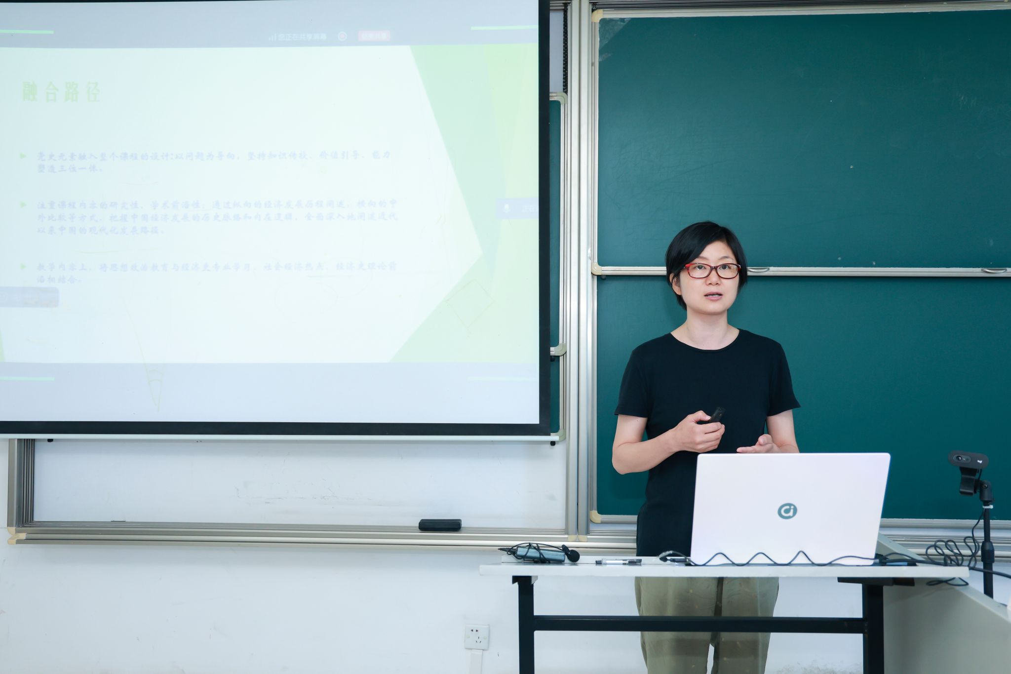 华东师范大学马克思主义学院杨丽萍教授结合自身19年教学经历与现场观察,将老师们的教学展示划分为“刚入门”“硬着陆”“有方法”“大师级”四个阶段,尖锐地指出了各个阶段老师们分享中存在的优点和不足,着重指出老师们要学习以“润物细无声”的方式,通过传统文化、本土文化等层层铺垫,以爱国主义情怀为纽带自然过渡到党史有机融入专业课程内容。